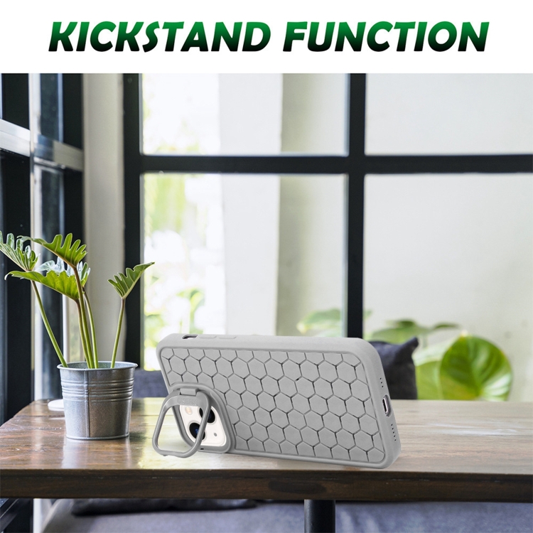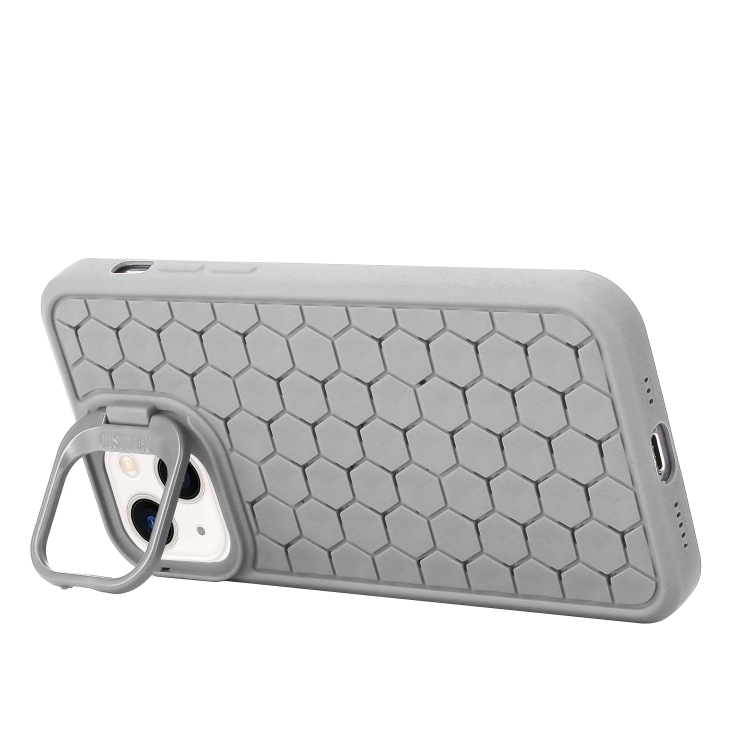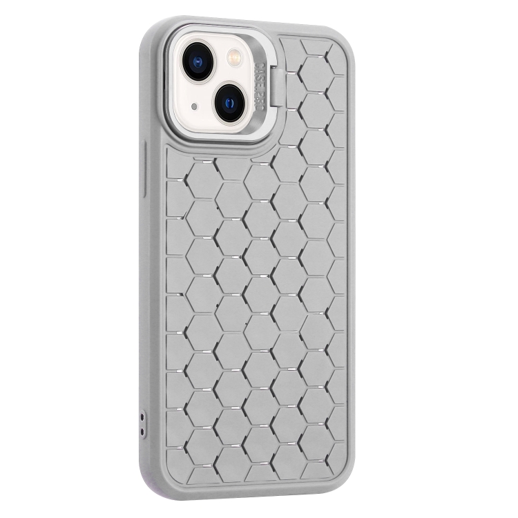 Funda para Teléfono TPU para iPhone 14 con Soporte para Lente Radiante de Panal (Gris)