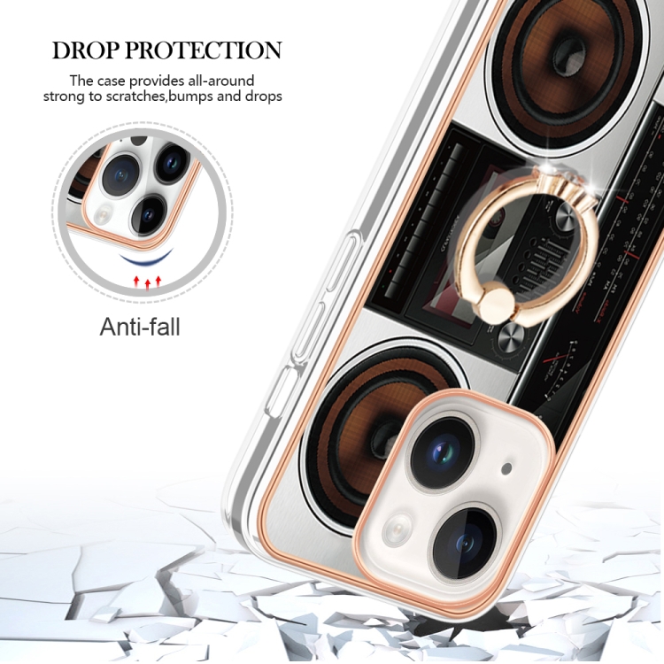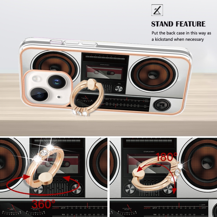 Funda para iPhone 14 Galvanoplastia Imd Doble Cara con Soporte para Anillo (Radio Retro)