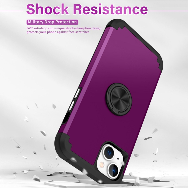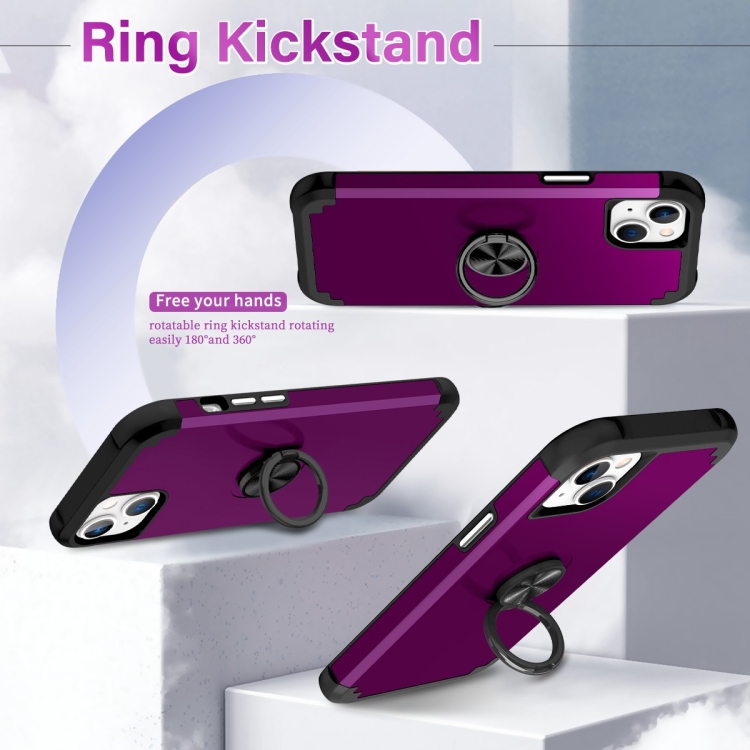 Funda Magnética para Teléfono iPhone 14 L2 con Soporte de Anillo Giratorio (Púrpura Oscuro)