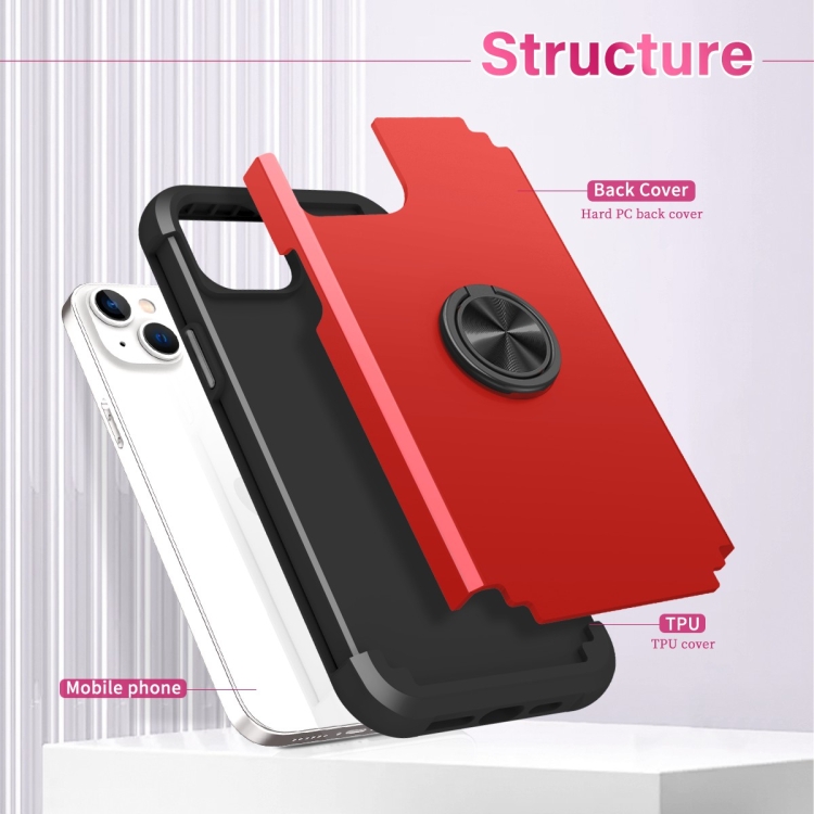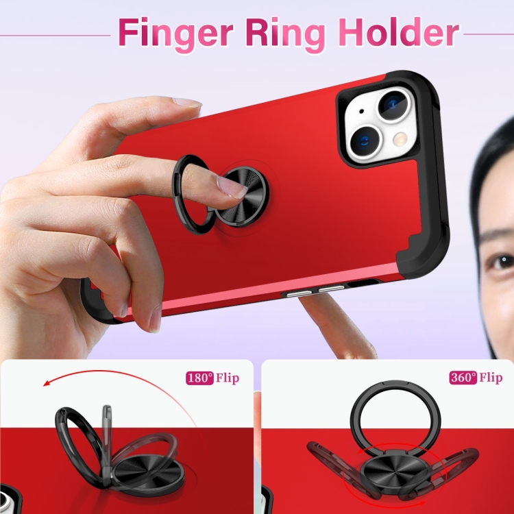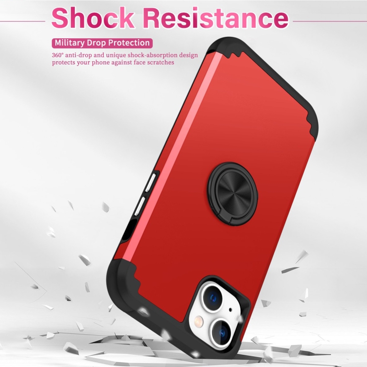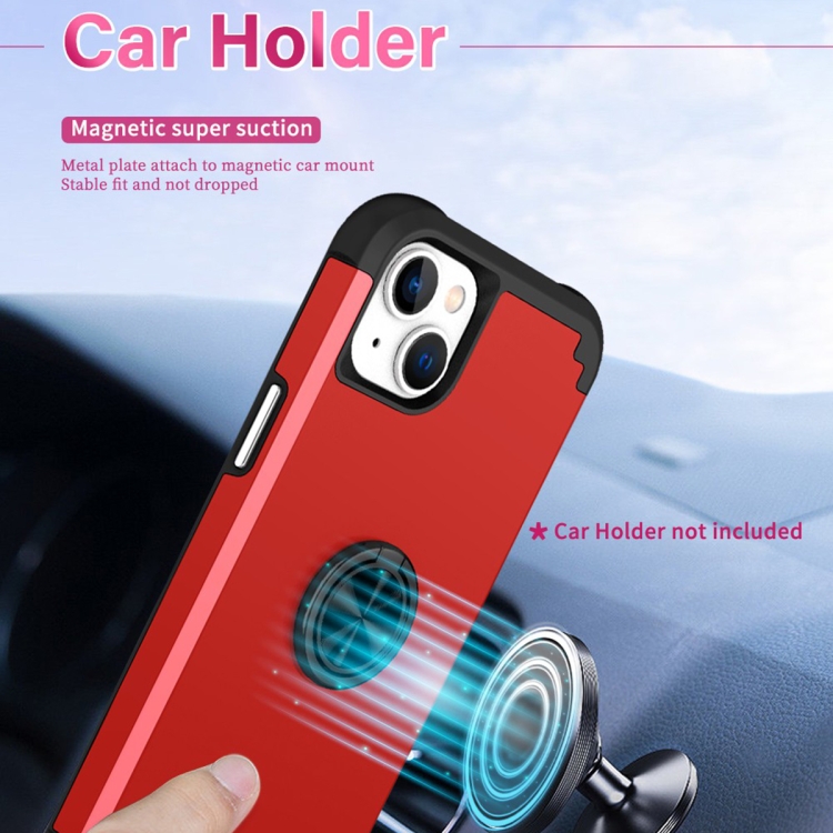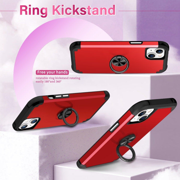 Funda para Teléfono iPhone 14 L2 Magnética con Soporte de Anillo Giratorio (Rojo)