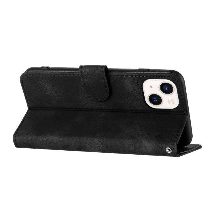 Funda para iPhone 14 Line Pattern Skin Feel Leather Phone Case (Negro)