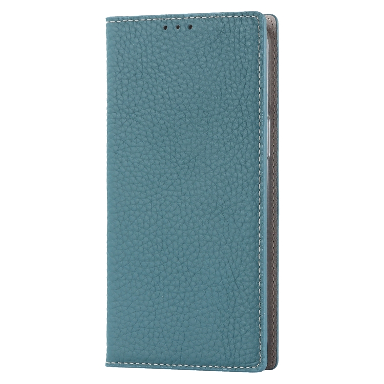 Funda de Teléfono iPhone 14 Cuero Genuino Litchi Texture (Azul Cielo)