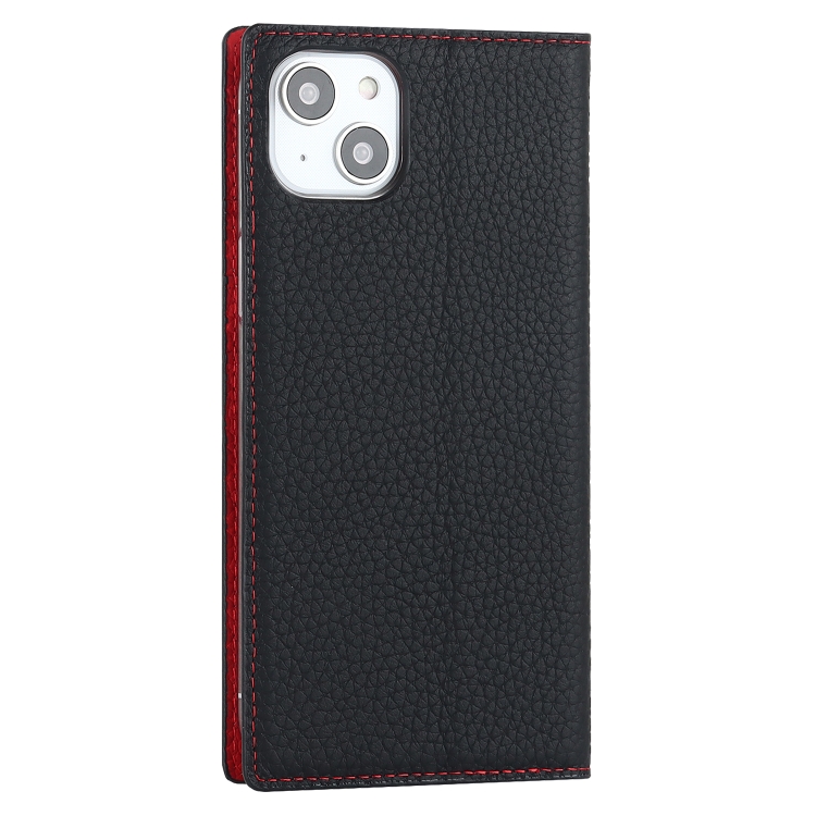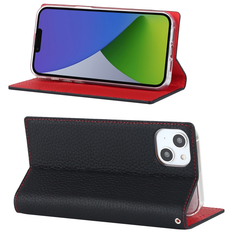 Funda de Teléfono para iPhone 14 Litchi Texture Cuero Genuino (Negro)