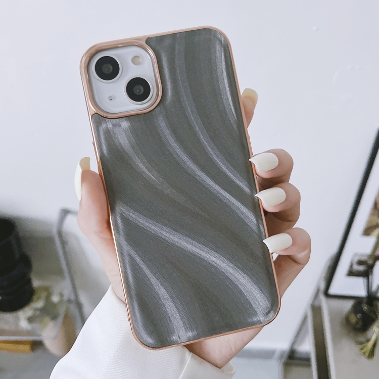 Funda Protectora para iPhone 14 Nano Galvanoplastia (Gris con Cuentas Plateadas)