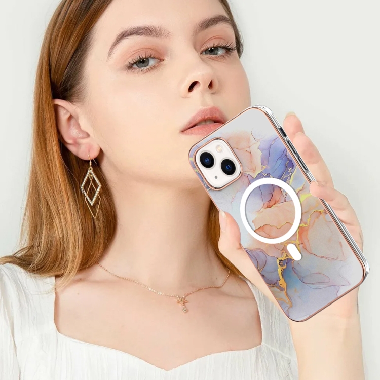 Funda para iPhone 14 Imd Magsafe TPU Doble Cara Patrón Mármol (Blanco)