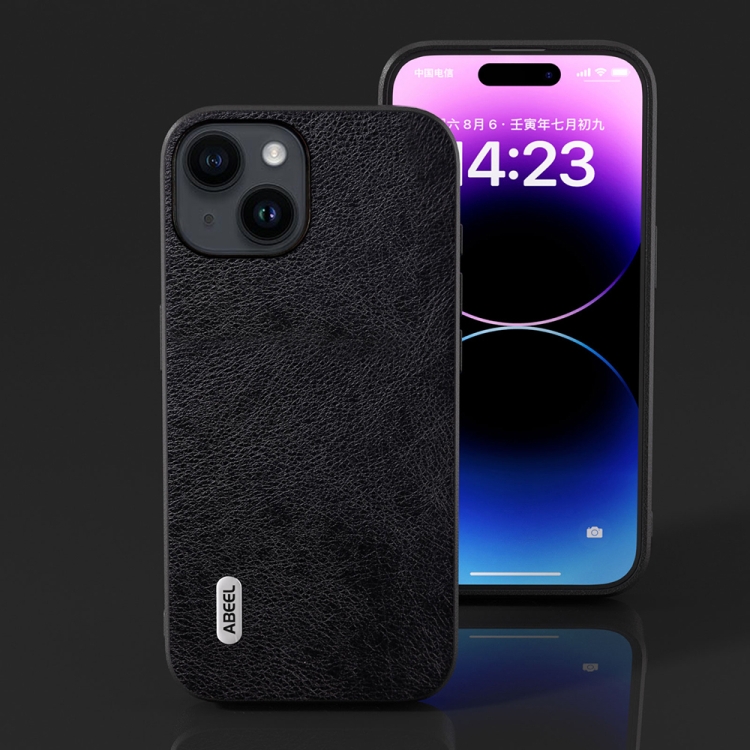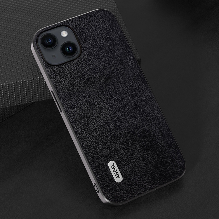 Funda para iPhone 14 Plus Abeel Dual Color Lichi Texture PU Phone Case (Negro)