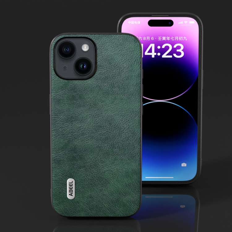 Funda para iPhone 14 Plus Abeel Dual Color Lichi Texture PU Phone Case (Verde)