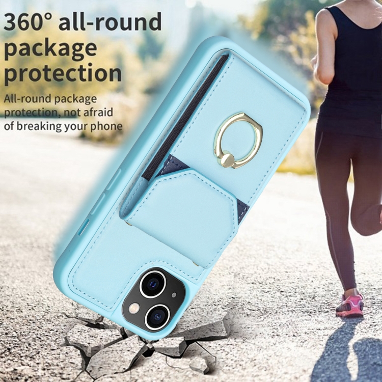 Funda para Teléfono Bf29 para iPhone 14 Plus con Soporte para Anillo y Bolsa para Tarjeta de Órgano (Azul)
