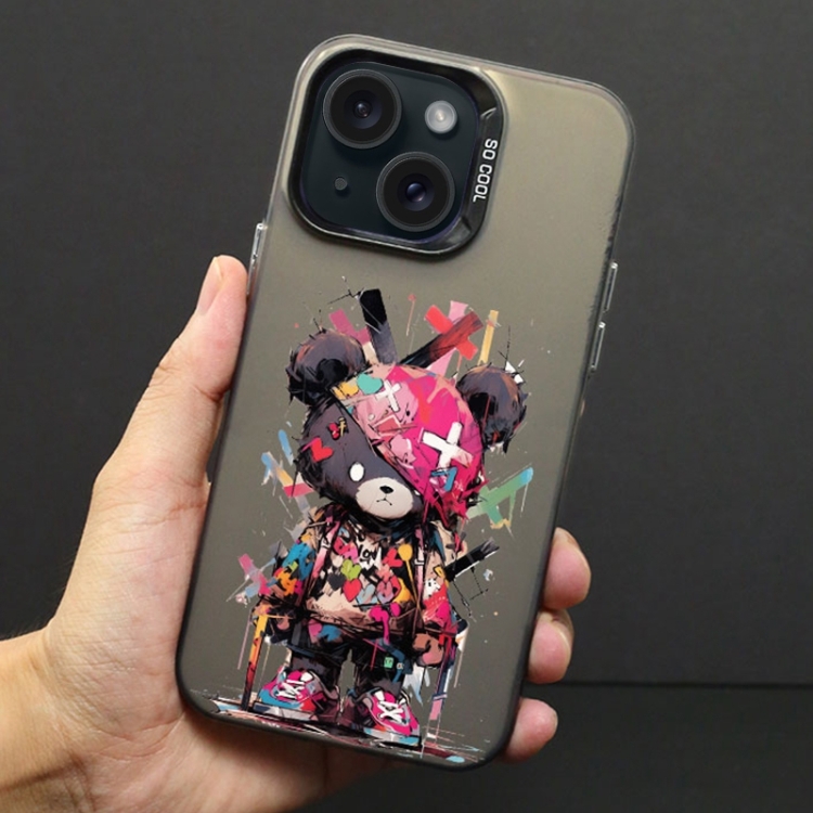 Funda para iPhone 14 Plus Color Ink Frosted PC + Estuche TPU Oso Negro
