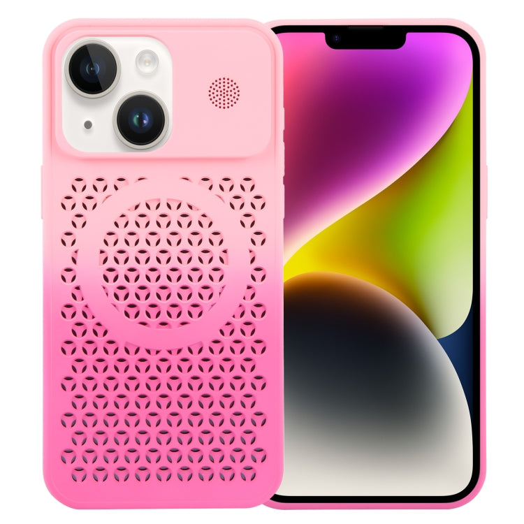 Estuche Magnético para iPhone 14 Plus con Aromaterapia y Enfriamiento de Panal (Rosa + Rojo Rosa)