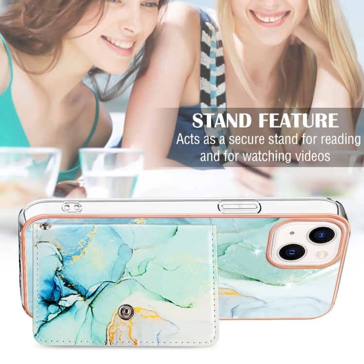 Estuche para Teléfono iPhone 14 Plus con Ranura para Tarjeta Imd Patrón de Mármol (Verde)