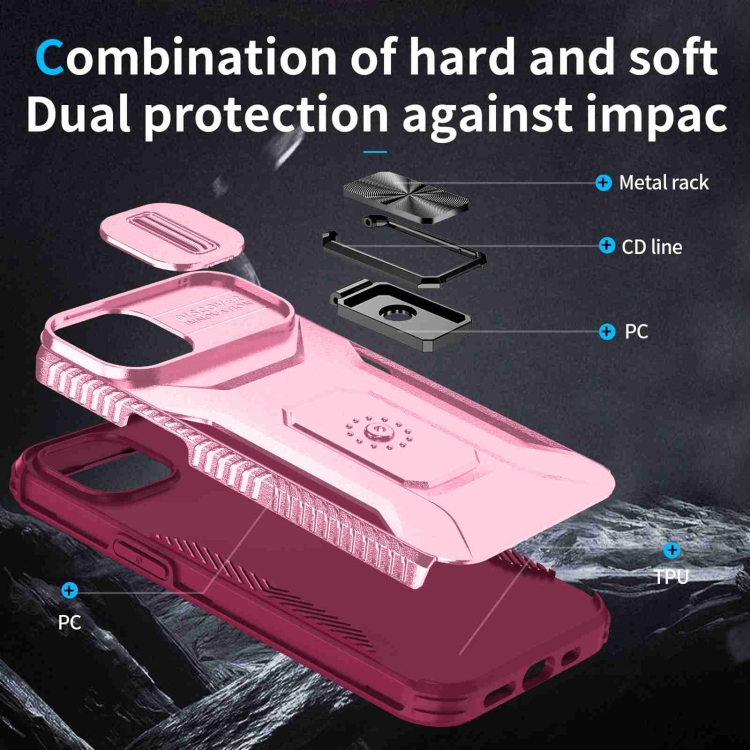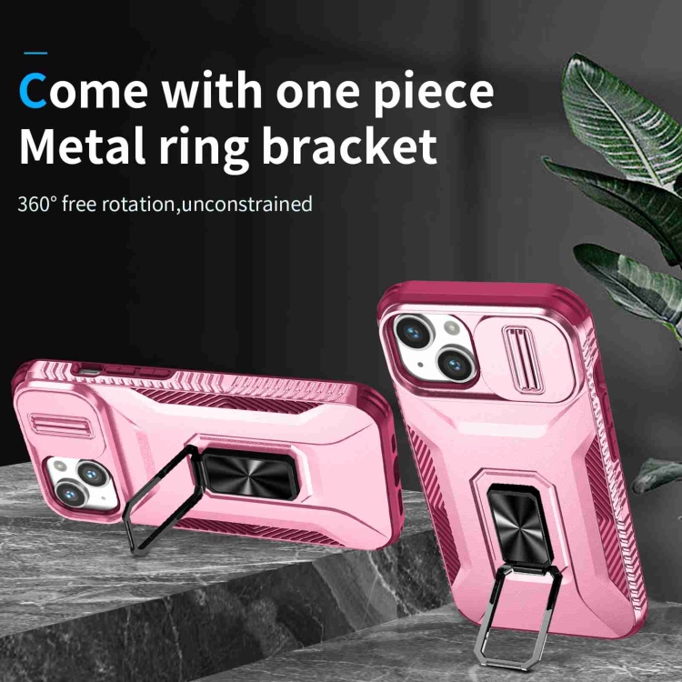 Estuche para Teléfono iPhone 14 Plus con Soporte Deslizante para Levas (Rosa + Rojo Rosa)