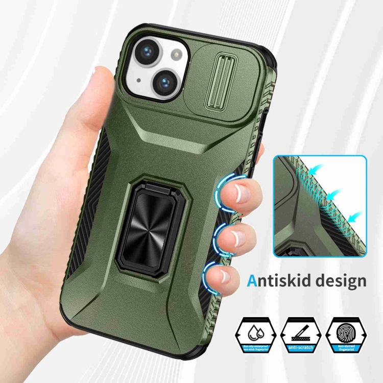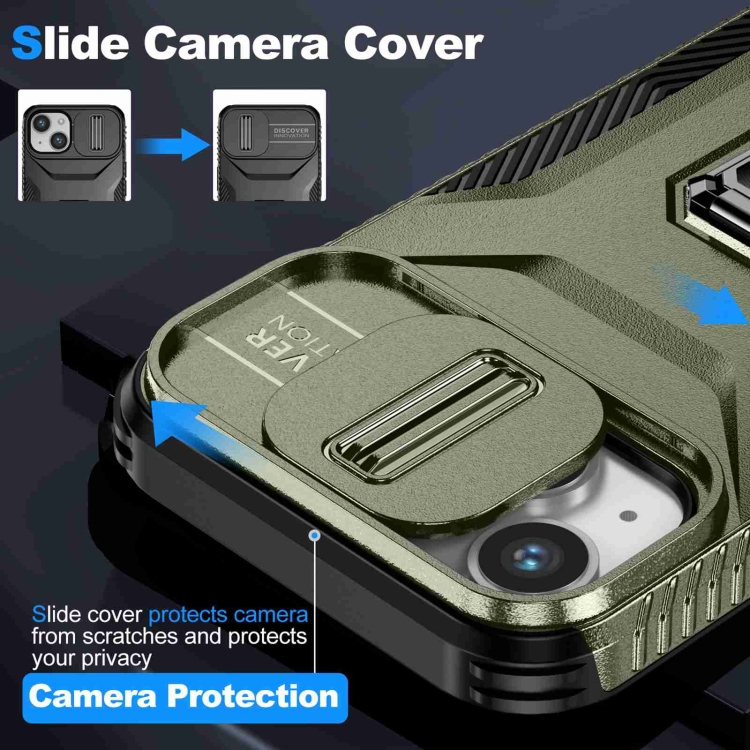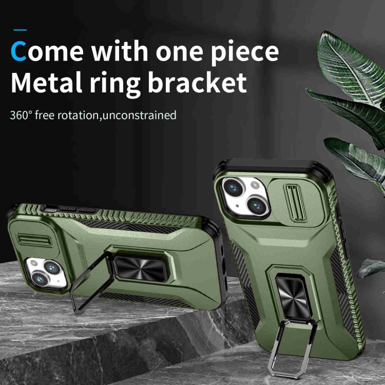 Estuche para teléfono iPhone 14 Plus con soporte deslizante para levas (Verde Alpino)