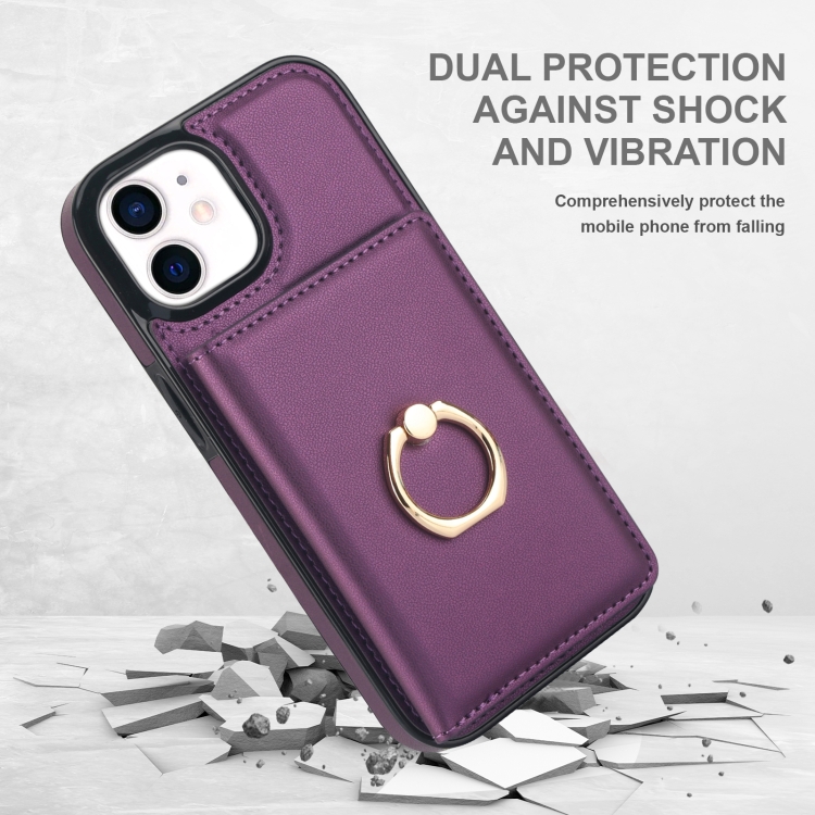 Estuche para Teléfono iPhone 14 Plus con Soporte para Anillo y Tarjeta Antirrobo Rfid (Púrpura Oscuro)