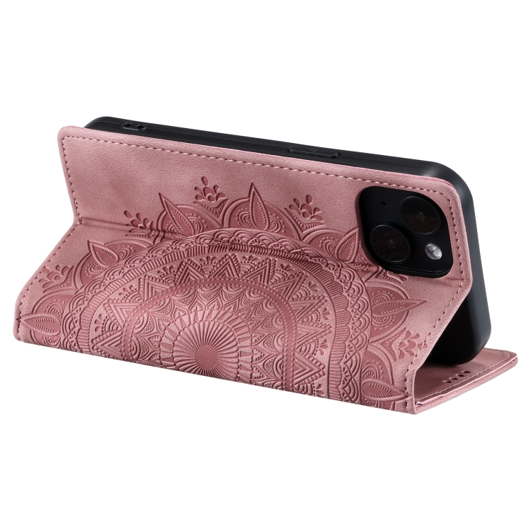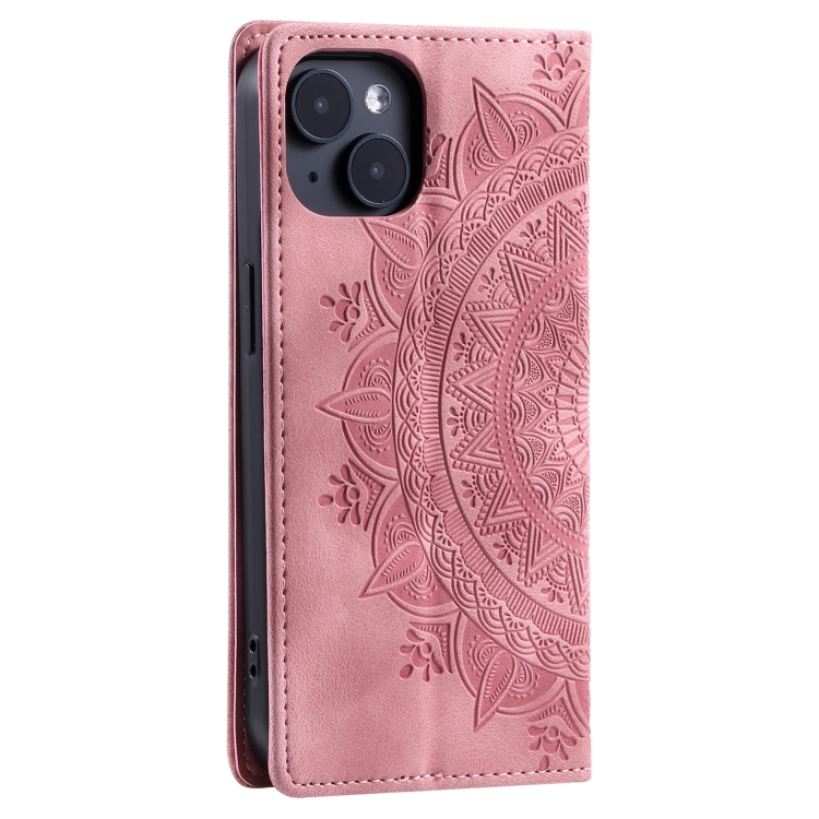 Estuche para Teléfono iPhone 14 Plus Cuero Magnético con Relieve de Tótem (Oro Rosa)