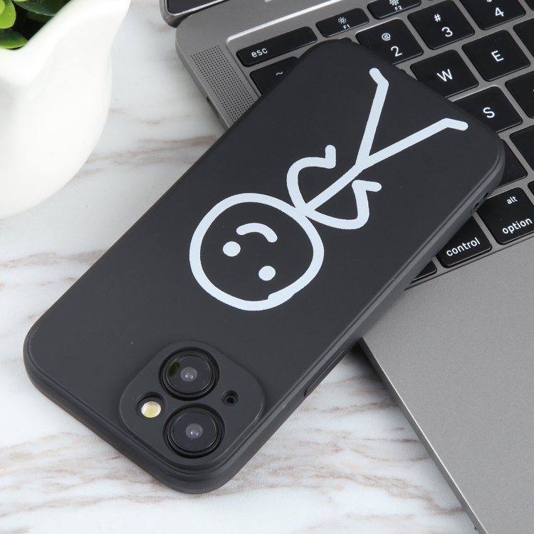 Estuche para Teléfono iPhone 14 Plus Silicona Líquida Patrón Stickman (Negro)