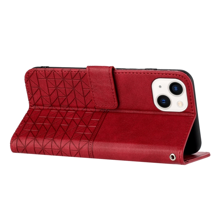 Funda para iPhone 14 Plus de Cuero con Textura Rómbica y Cordón (Rojo)