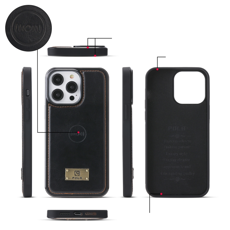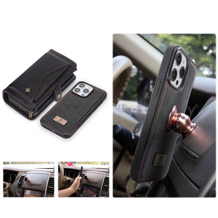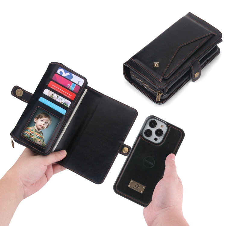 Funda para iPhone 14 Plus Cuero con Billetera y Cremallera Multifuncional (Negro)