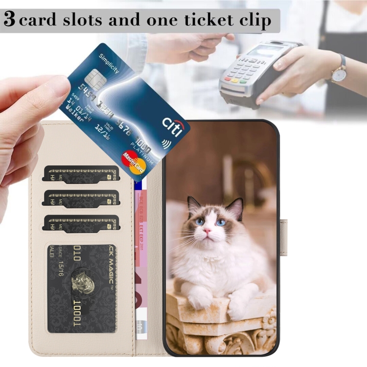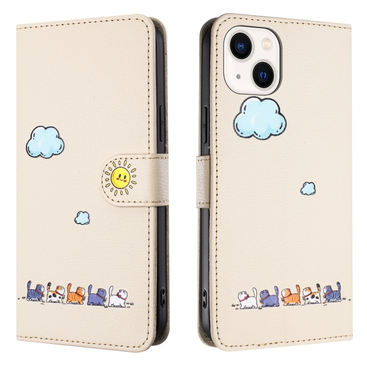 Funda de Cuero para Teléfono iPhone 14 Plus con Gatos de Dibujos Animados (Beige Blanco)