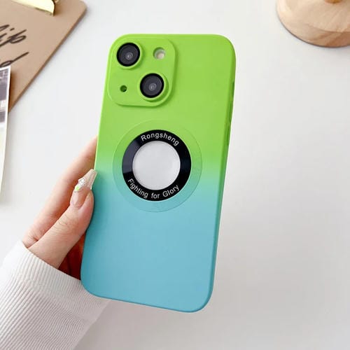 Funda de teléfono TPU Magsafe iPhone 14 Plus con gradiente de dos colores (Verde + Azul)