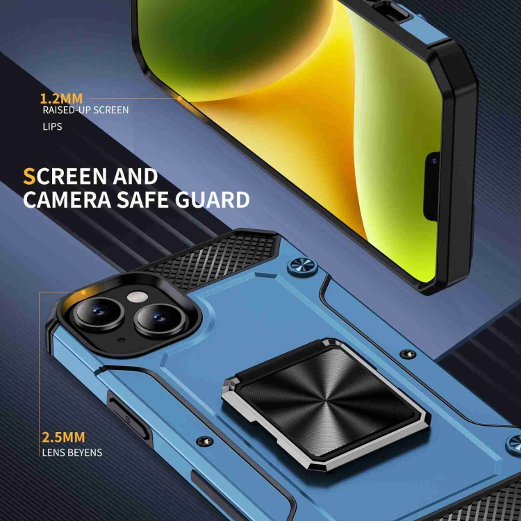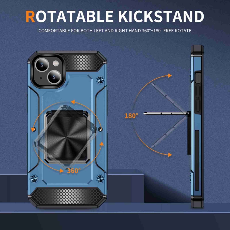 Funda para Teléfono iPhone 14 Plus Soporte de Metal a Prueba de Golpes (Azul Marino)