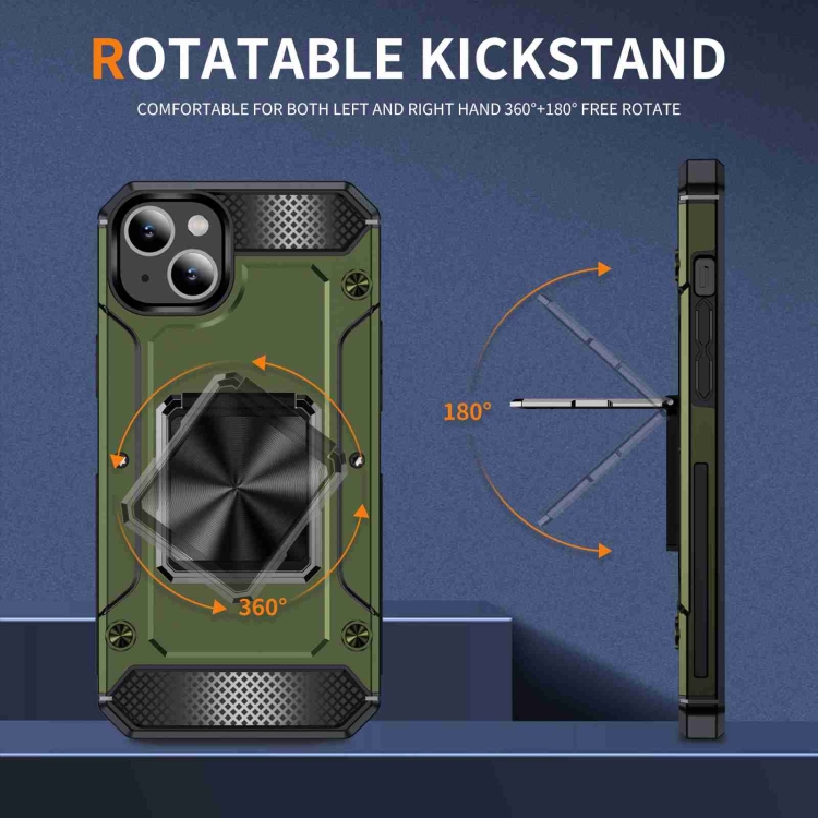 Funda para Teléfono iPhone 14 Plus con Soporte de Metal a Prueba de Golpes (Verde Oliva)