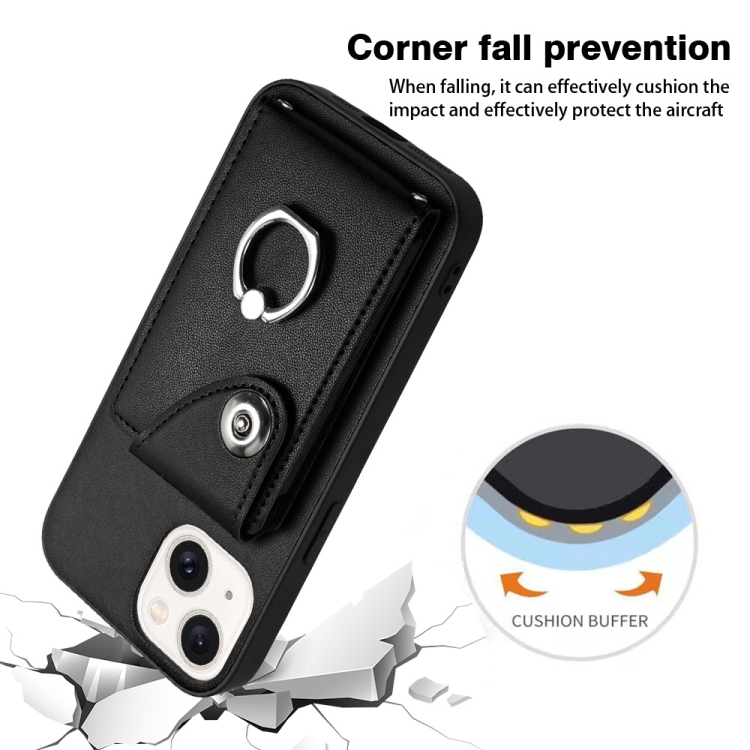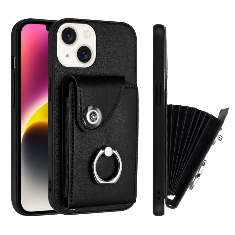 Funda para Teléfono iPhone 14 Plus con Soporte para Anillo y Bolsa para Tarjeta de Órgano (Negro)