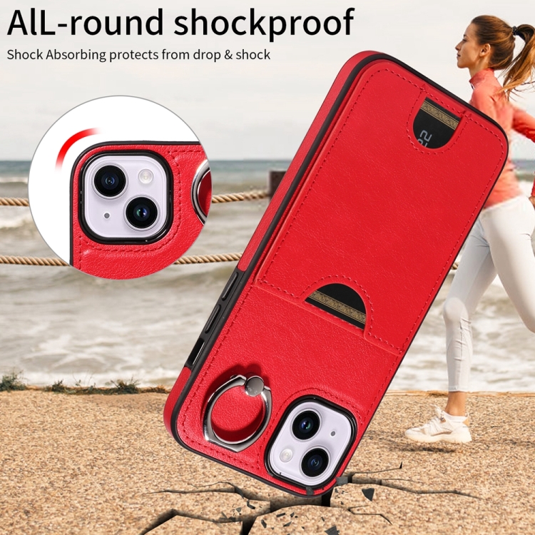Funda para Teléfono iPhone 14 Plus con Soporte para Anillo y Ranura para Tarjeta (Rojo)