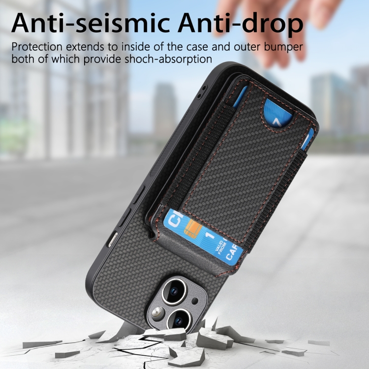 Funda para teléfono iPhone 14 Plus con soporte y billetera con tapa vertical de fibra de carbono (Negro)