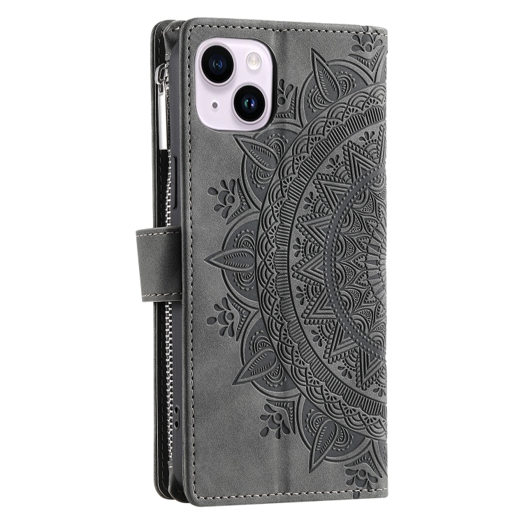 Funda para Teléfono iPhone 14 Plus Cuero Cremallera Totem Múltiples Tarjetas (Gris)