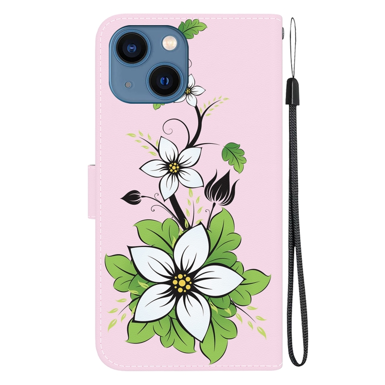Funda para Teléfono Apple iPhone 14 Plus Cuero Dibujo Coloreado Textura de Cristal (Lily)