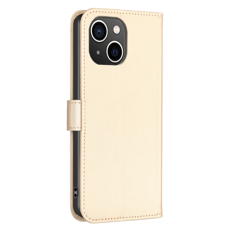 Funda para Teléfono iPhone 14 Plus Cuero Relieve Cuatro Hojas (Dorado)