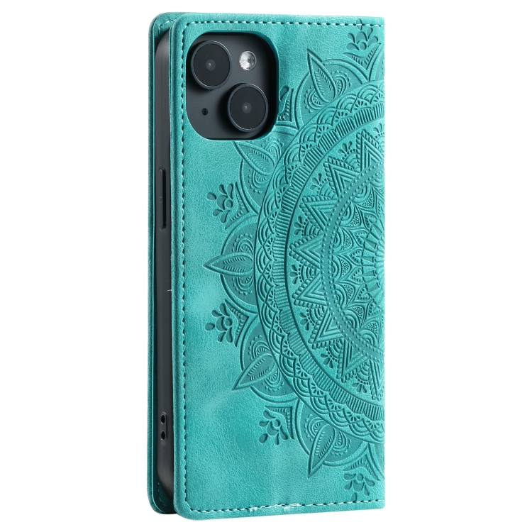 Funda para Teléfono iPhone 14 Plus Cuero Magnético Relieve Tótem (Verde)