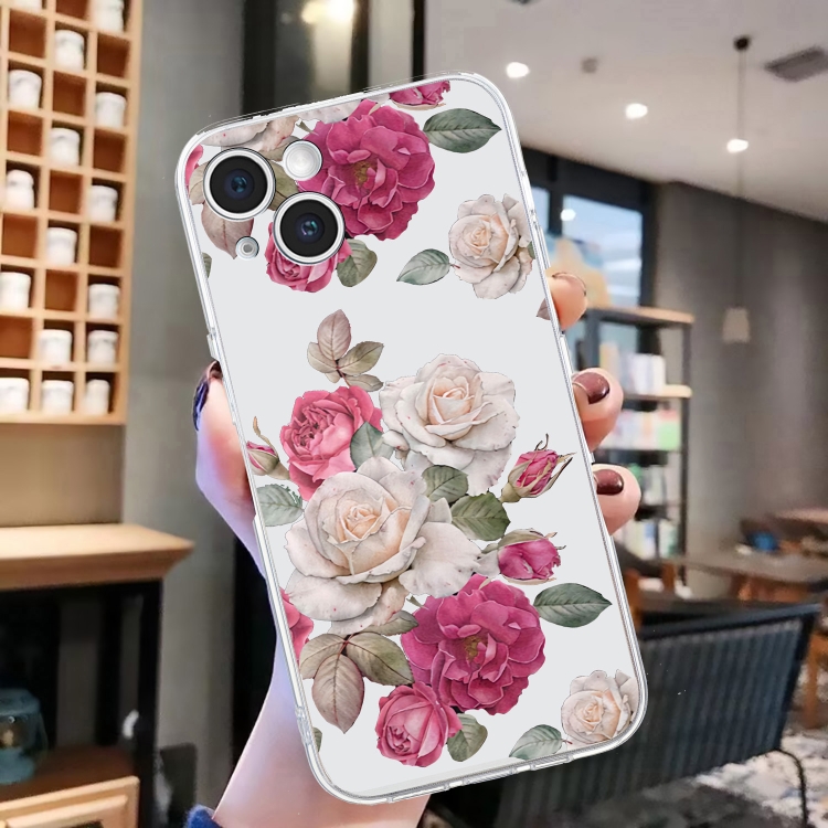 Funda para iPhone 14 Plus Transparente TPU con Patrón de Dibujo de Colores (Peonía)