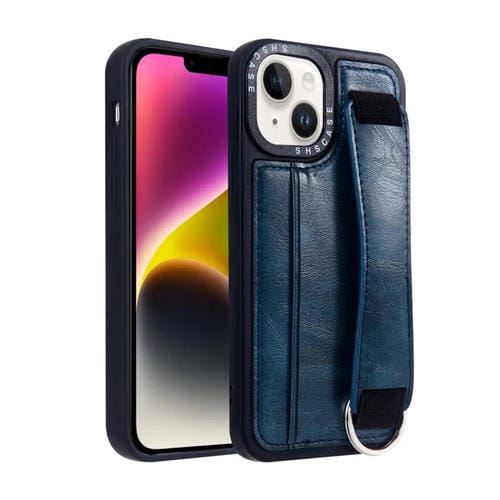 Marco de Fotos Tarjeta Monedero Correa de Muñeca Titular Contraportada iPhone 14 Plus (Azul Real)
