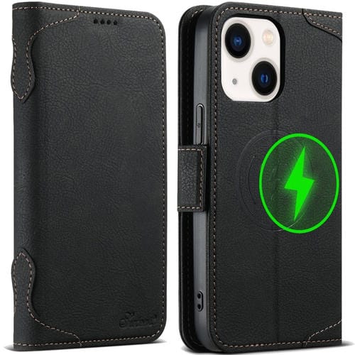 Funda para Teléfono Suteni J07 para iPhone 14 Plus Cuero Magsafe Tapa Horizontal Multifuncional (Negro)