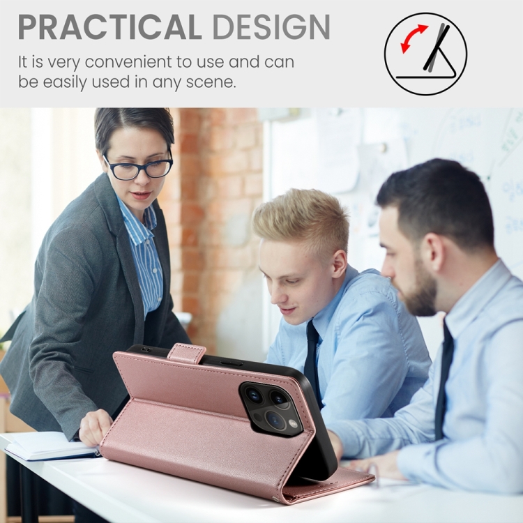 Funda para Teléfono iPhone 14 Pro Cuero Esmerilado Magnético con Hebilla Lateral (Oro Rosa)