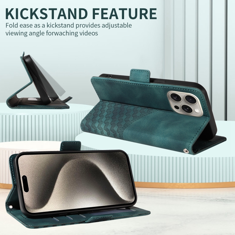 Funda para Teléfono iPhone 14 Pro Cuero Estrellado Rombo En Relieve (Verde)