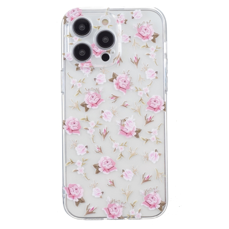 Funda para iPhone 14 Pro TPU con Patrón de Dibujo de Colores Floral (Rosa)