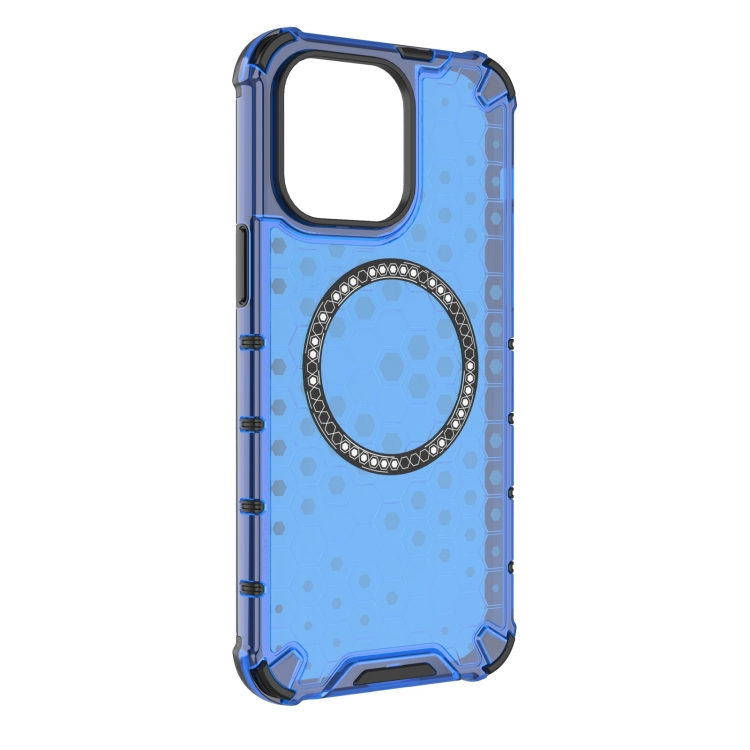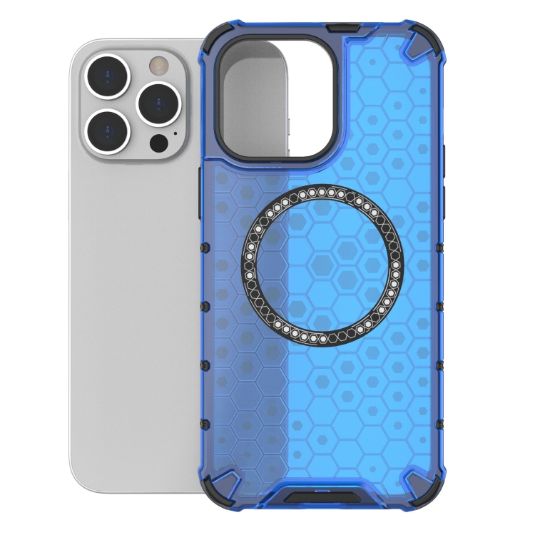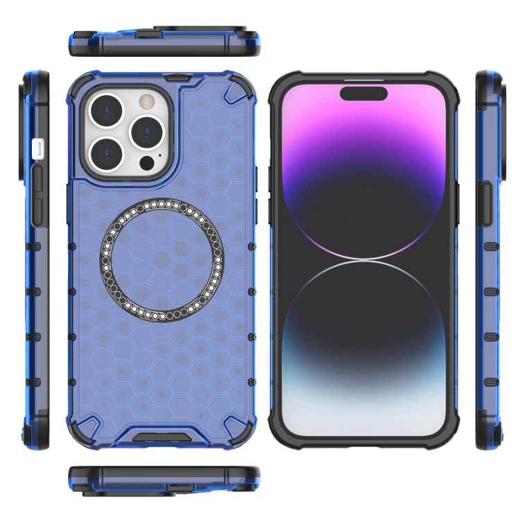 Funda para Teléfono iPhone 14 Pro Honeycomb Magnetic Ring a Prueba de Golpes (Azul)