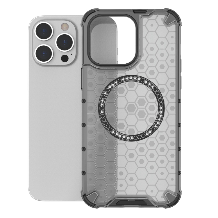Funda para Teléfono iPhone 14 Pro Honeycomb Magnetic Ring a Prueba de Golpes (Negro)