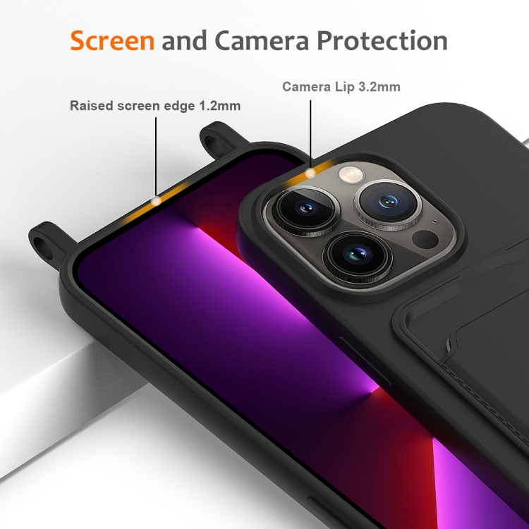 Funda para Teléfono iPhone 14 Pro Max Bolsa para Tarjeta Integrada Silicona Líquida con Cordón (Negro)