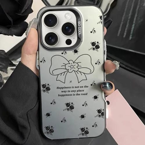 Caja de teléfono híbrida TPU para iPhone 14 Pro Max con pintura plateada (Lazo Floral Negro)