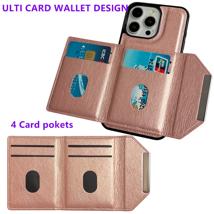 Funda para Teléfono iPhone 14 Pro Max Hebilla de Metal Ranuras para Tarjetas Color Oro Rosa