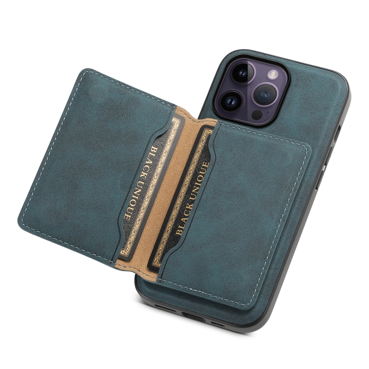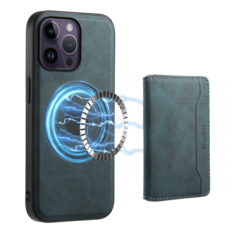 Funda para Teléfono Denior D13 para iPhone 14 Pro Max con Bolsa para Tarjeta Magsafe de Cuero con Textura Retro (Azul)