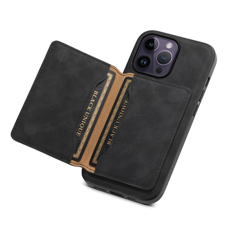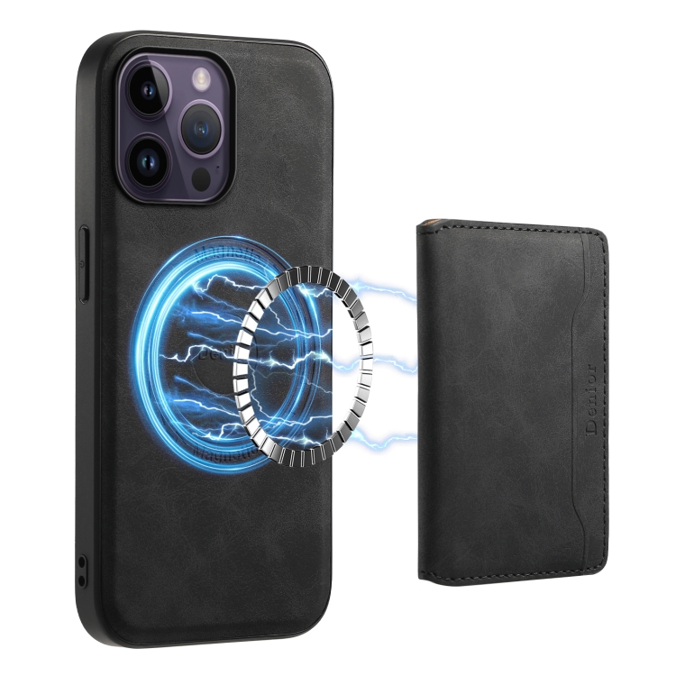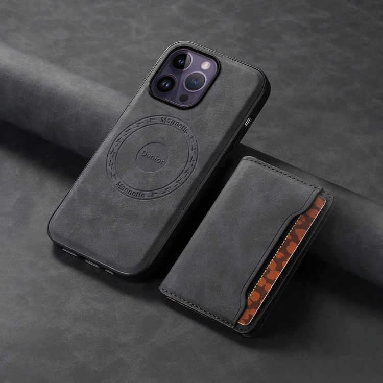 Funda para Teléfono Denior D13 para iPhone 14 Pro Max con Bolsa para Tarjeta Magsafe de Cuero con Textura Retro (Negro)