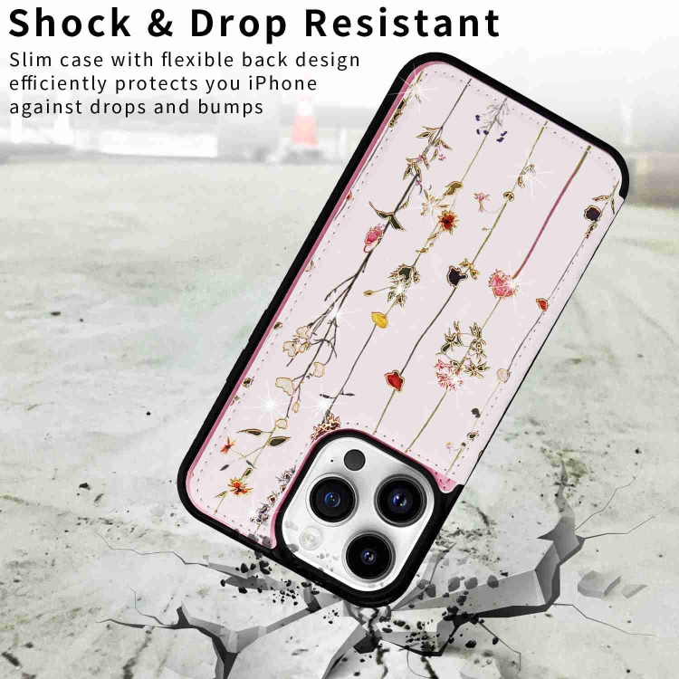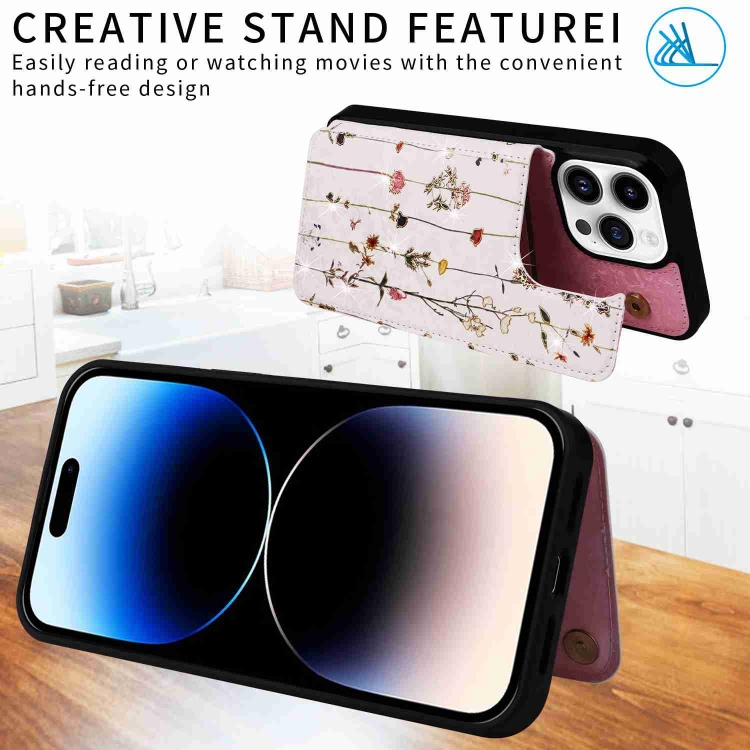 Estuche Antirrobo RFID para iPhone 14 Pro Max con Doble Hebilla Impresa (Mundo de Flores Secas)