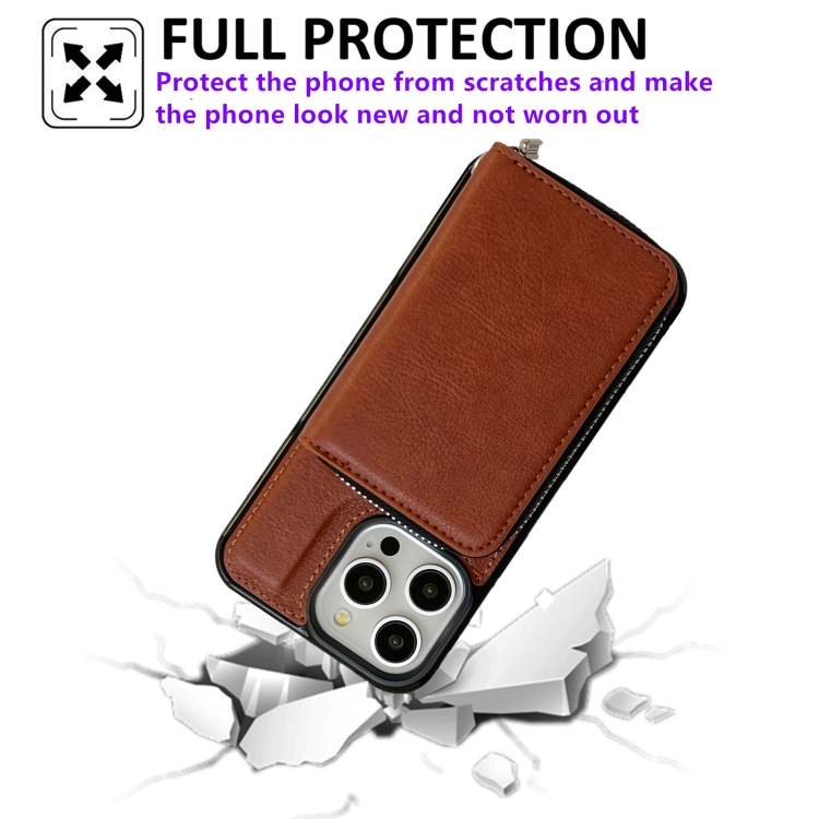 Funda para Teléfono iPhone 14 Pro Max con Bolsa, Ranuras para 11 Tarjetas y Cremallera (Marrón)