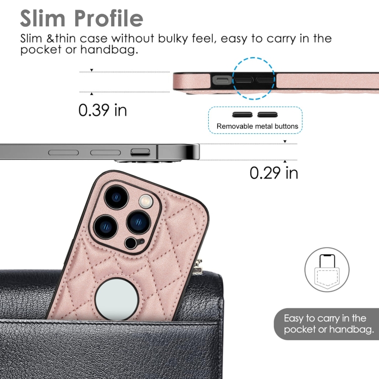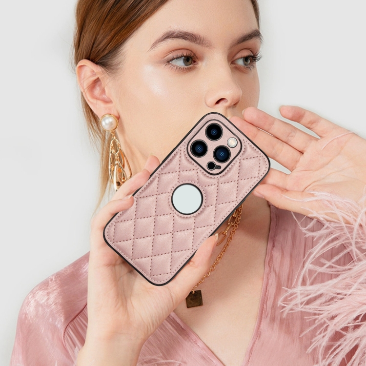 Funda para Teléfono iPhone 14 Pro Max con Contraportada de Cuero Rómbico (Oro Rosa)
