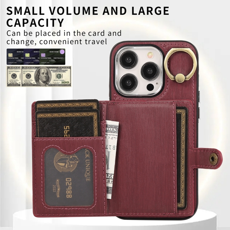 Funda para Teléfono iPhone 14 Pro Max con Soporte para Anillo y Billetera Textura Cepillada (Rojo Vino)